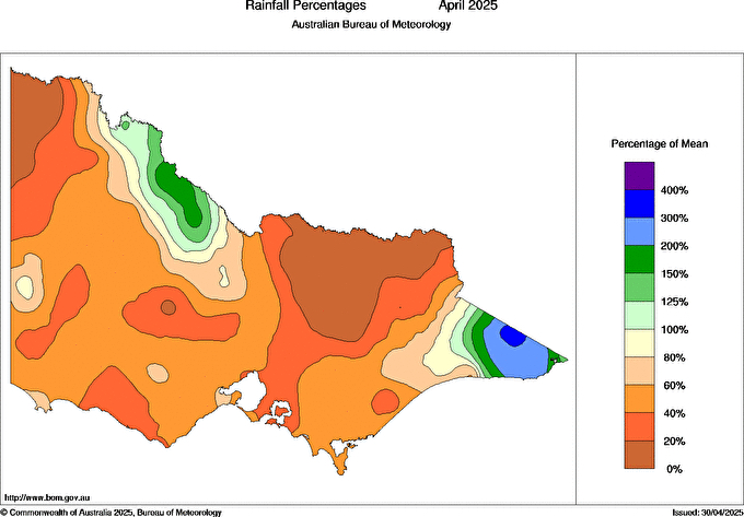 April follows a trend started earlier last year where cold fronts mostly miss Victoria (and much of southeastern Australia), and the other systems that bring rain didn't swing by, bringing rain to other parts of the country instead.